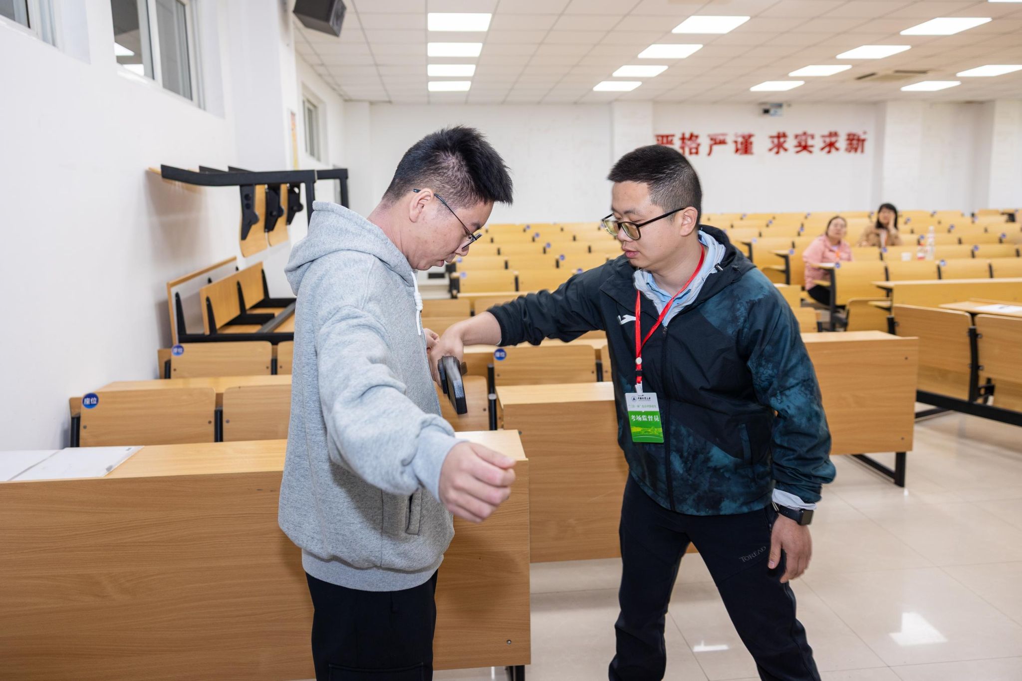 为加强考试管理,学校参照高考考务管理要求,细化完善综合测试各项管理制度和操作流程,制定了考试安全保障措施,确保考试组织严格规范。学校严格审查考生身份和报名条件,使用刷脸身份验证仪,对考生进行身份验证;使用配备金属探测仪和安检门,严防考生携带手机进入考场;考场内设置信息屏蔽仪,防止考生使用通讯设备。此外,学校纪监室对综合测试工作进行全程监督,严格落实考生、评委、考场随机编排的“三随机”工作机制,综合素质测试全程录音录像。