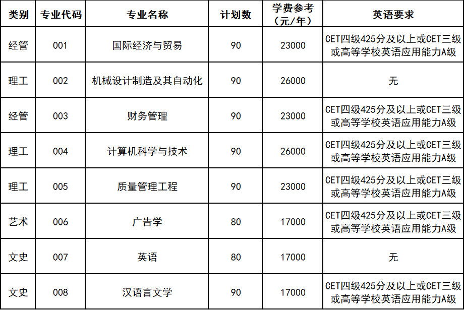 专业介绍:本专业培养具有扎实的英语语言基础和比较广泛的交叉学科知识,具有一定的口译、教学、文秘等方面能力,能熟练地运用英语从事国际间商务交流的应用型高级技术人才。专业重视并鼓励学生参加各类学科竞赛,学生在英语演讲比赛、希望之星英语风采大赛、英语阅读和写作大赛中均有出色表现。已培养出近两千名毕业生,在各自的岗位上表现优异。本专业专任教师大都拥有双硕士学位和硕士学位,常年聘用外籍教师和外国语学院高职称教师。学生学业完成后颁发文学学士学位和本科毕业证书。
