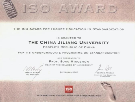本专业获得全球首届ISO标准化高等教育奖。“标准化与质量管理”教学团队被评为浙江省级教学团队。形成了四个特色鲜明的教学团队,四个特色方向形成了教授领衔、青年教师为骨干成员的教学团队,获批本领域国家社科重大、重点和一般项目25项,制定国际标准6项、国家标准7项,被授予中国标准创新贡献奖,获得全国教师教学创新大赛二等奖,省教师教学创新大赛特等奖、二等奖,浙江省教学成果奖多项。