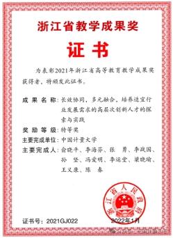 本专业获浙江省教学成果特等奖奖1项、研究生教育教学成果奖1项、哲学社会科学优秀成果二等奖1项,国家级、省部级各类各级课题项目二十余项。